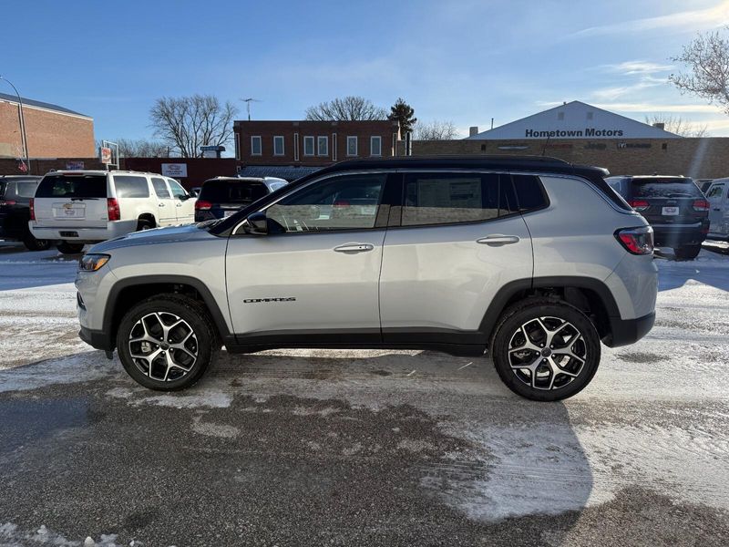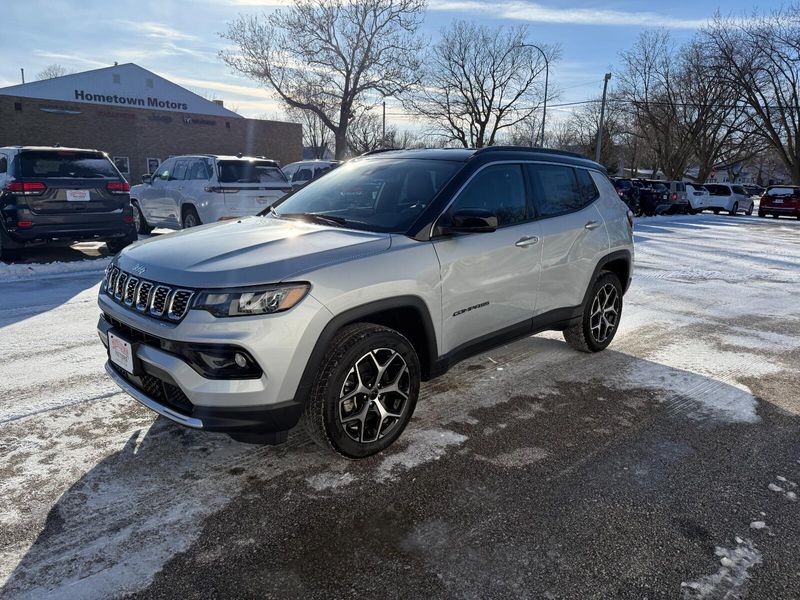 Discover the New 2026 Jeep Compass Limited 4x4 in Rockwell City, IALooking for a reliable SUV in Rockwell City? The 2026 Jeep Compass Limited 4x4 delivers premium performance and style for Iowa drivers. Equipped with a 2.0L I4 Turbo Engine with ESS, this Jeep offers impressive power and fuel efficiency. Enjoy smooth handling with its automatic transmission and confidence on any terrain thanks to the 4x4 drivetrain.This Compass shines in Silver Zynith Metallic Clear Coat, giving it a sleek, modern look perfect for both city streets and rural Iowa roads. Inside, you???ll find advanced tech like Uconnect 5 with a 10.1-inch touchscreen, leather-trimmed seating, and safety features such as blind-spot monitoring and adaptive cruise control.Located at Hometown Motors in Rockwell City, IA, we proudly serve drivers from Carroll, Fort Dodge, and surrounding communities. Whether you???re commuting or exploring Iowa???s scenic routes, the Jeep Compass Limited is your ideal companion.Key Features:2.0L Turbo Engine with ESS4x4 CapabilityAutomatic TransmissionPremium Interior & Advanced SafetyStunning Silver Zynith ExteriorVisit Hometown Motors in Rockwell City today to test drive the 2026 Jeep Compass Limited and experience why Jeep is the trusted choice for Iowa drivers.